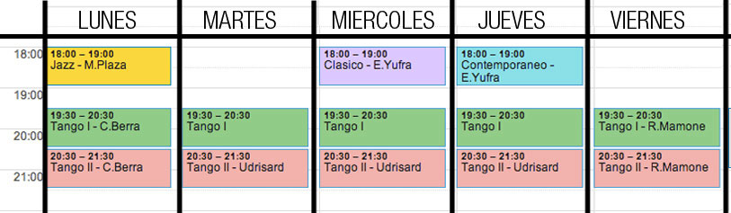> Clases Iniciación & Principiantes (Tango I) —> Lunes a Viernes: ven las veces que quieras / Beginners Class (Tango I) -> Monday to Friday: come anytime you want)