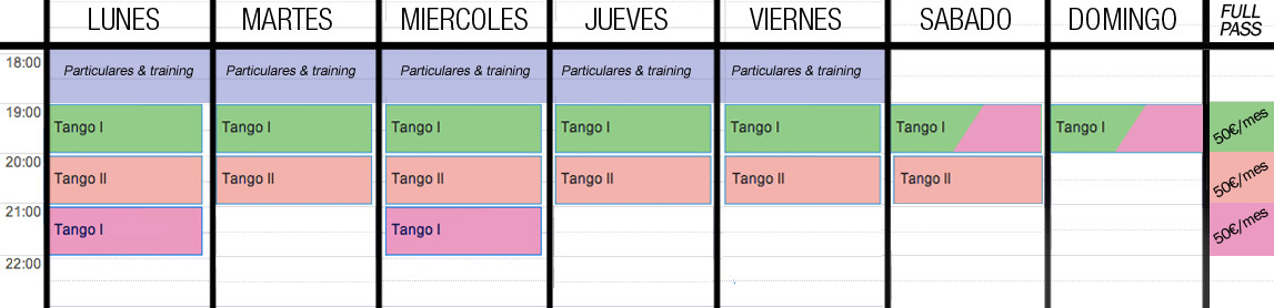Horarios y precios de nuestra Academia de Tango en Barcelona: