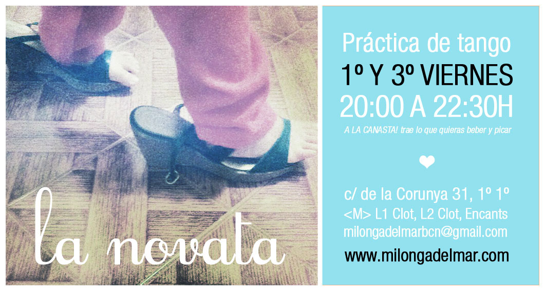 El 1er y 3er viernes te esperamos en la práctica gratuita de Tango LA NOVATA. Tempranito para que salgas del trabajo y te vengas directamente a practicar. De 20 a 22.30H.