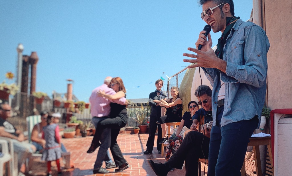 Nos acompaña un verdadero showman: Gabriel Vallone, con su guitarra y anécdotas. Con una exquisita selección de Tangos y composiciones propias. Un encuentro para escuchar y/o bailar, mientras disfrutamos de un oasis en medio del Barrio Gótico.