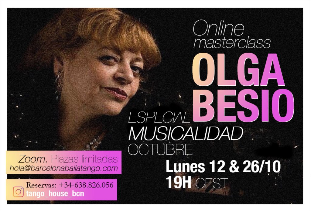 Te proponemos dos masterclasses con Olga Besio, una referencia en el Tango danza, y una generosa maestra. En esta ocasión, el encuentro será virtual y con una temática especial: MUSICALIDAD