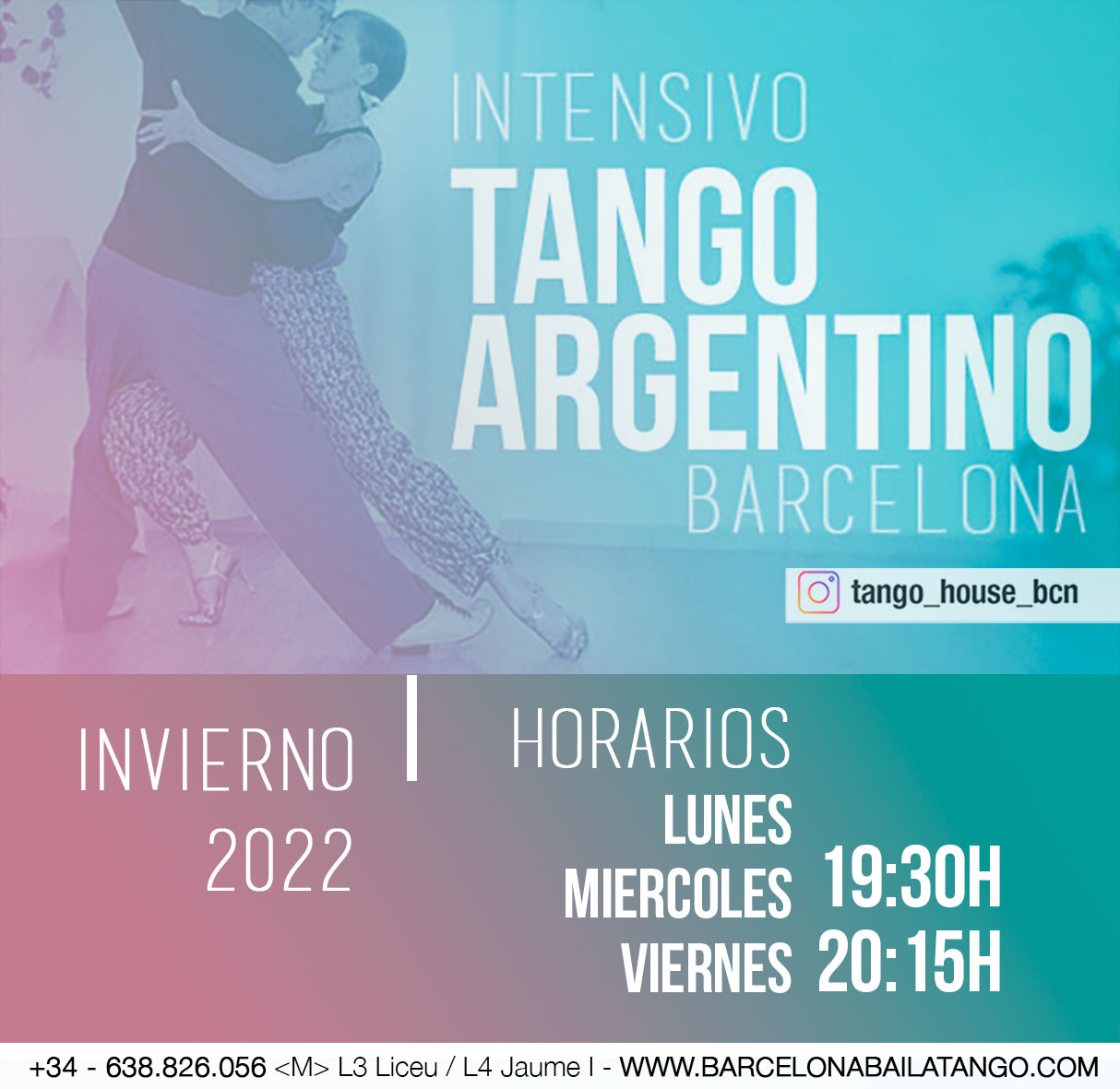 Para que te inicies en esta danza popular que cada día gana más adeptos o para que perfecciones tu baile. Clases de Tango en Barcelona orientadas a iniciación, principiantes, intermedio, avanzados y profesionales.