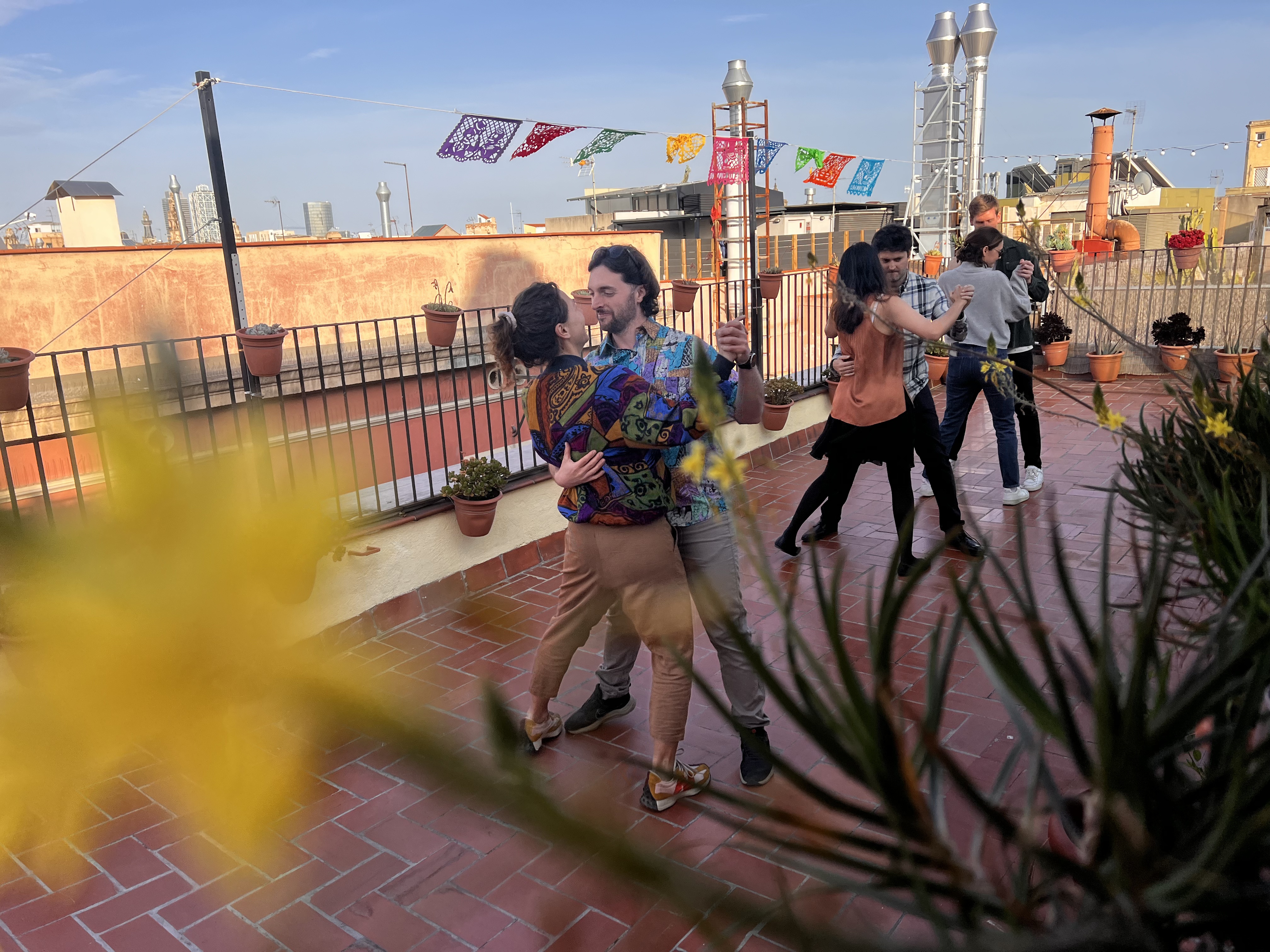 Enjoy tango classes in the heart of Barcelona in a beautiful venue with sunset, a toast, argentinian teachers and lot of fun.